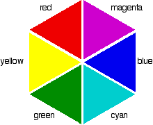 Colours directly opposite each other on the colour wheel are said to be complementary colours. Blue and yellow are complementary colours; red and cyan are complementary; and so are green and magenta. Mixing together two complementary colours of light will give you white light. | |||||||||||||||||