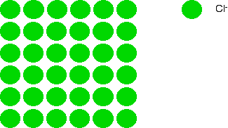 Notice that the caesium ions aren't touching each other either, but that each caesium ion is resting on four chloride ions from the layer below. Now let's put another layer of chloride ions on, exactly the same as the first layer. Again, the chloride ions in this layer are NOT touching those in the bottom layer - otherwise you are introducing repulsion. Since we are looking directly down on the structure, you can't see the bottom layer of chloride ions any more, of course.