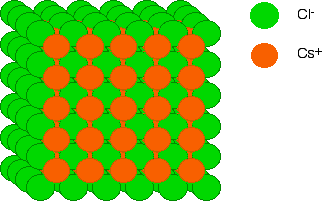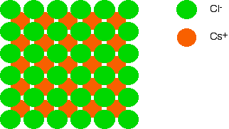 How the ions are arranged in caesium chloride Imagine a layer of chloride ions as shown below. The individual chloride ions aren't touching each other. That's really important - if they were touching, there would be repulsion.