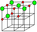 If you now think about a caesium ion sandwiched between the two layers of chloride ions, it is touching four chloride ions in the bottom layer, and another four in the top one. Each caesium ion is touched by eight chloride ions. We say that it is 8-co-ordinated. If we added another layer of caesium ions, you could similarly work out that each chloride ion was touching eight caesium ions. The chloride ions are also 8-co-ordinated. Overall, then, caesium chloride is 8:8-co-ordinated. The final diagram in this sequence takes a slightly tilted view of the structure so that you can see how the layers build up. These diagrams are quite difficult to draw without it looking as if ions of the same charge are touching each other. They aren't!