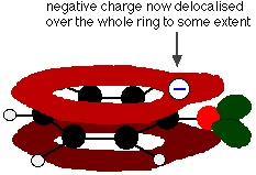 Warning! You need to understand about the bonding in benzene in order to make sense of this next bit. If your syllabus says that you need to know about the acidity of phenol, then you will have to understand the next few paragraphs - which in turn means that you will have to understand about benzene. If it doesn't mention phenol, skip it! If you follow this link, you may have to explore several other pages before you are ready to come back here again. Use the BACK button (or HISTORY file or GO menu) on your browser to return to this page. | |||||||||||||||||||||||||||||||||