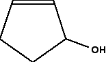 When you are looking at rings like this, as far as optical isomerism is concerned, you don't need to look at any carbon in a double bond. You also don't need to look at any junction which only has two bonds going away from it. In that case, there must be 2 hydrogens attached, and so there can't possibly be 4 different groups attached. In this case, that means that you only need to look at the carbon with the -OH group attached. It has an -OH group, a hydrogen (to make up the total number of bonds to four), and links to two carbon atoms. How does the fact that these carbon atoms are part of a ring affect things? You just need to trace back around the ring from both sides of the carbon you are looking at. Is the arrangement in both directions exactly the same? In this case, it isn't. Going in one direction, you come immediately to a carbon with a double bond. In the other direction, you meet two singly bonded carbon atoms, and then one with a double bond. That means that you haven't got two identical hydrocarbon groups attached to the carbon you are interested in, and so it has 4 different groups in total around it. It is asymmetric - a chiral centre. What about this near-relative of the last molecule?