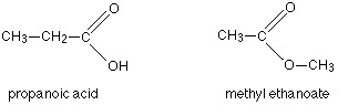 Note: To repeat the warning given earlier: If you are asked to draw the structural isomers from a given molecular formula, don't forget to think about all the possibilities. Can you branch the carbon chain? Can you move a group around on that chain? Is it possible to make more than one type of compound? Be careful though! If you are asked to draw the structures of esters with the molecular formula C3H6O2, you aren't going to get a lot of credit for drawing propanoic acid, even if it is a valid isomer. | ||