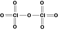 There's nothing in the least surprising about this molecule and it's physical properties are just what you would expect for a molecule this size. Chlorine(VII) oxide In chlorine(VII) oxide, the chlorine uses all of its seven outer electrons in bonds with oxygen. This produces a much bigger molecule, and so you would expect its melting point and boiling point to be higher than chlorine(I) oxide. Chlorine(VII) oxide is a colourless oily liquid at room temperature. In the diagram, for simplicity I have drawn a standard structural formula. In fact, the shape is tetrahedral around both chlorines, and V-shaped around the central oxygen.