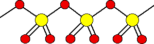 Notice that each silicon atom is bridged to its neighbours by an oxygen atom. Don't forget that this is just a tiny part of a giant structure extending in all 3 dimensions. | |||||||||||||||