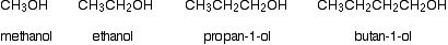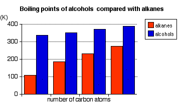 The chart shows the boiling points of some simple primary alcohols with up to 4 carbon atoms.