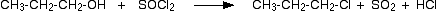Reacting alcohols with sulphur dichloride oxide (thionyl chloride) The reaction Sulphur dichloride oxide (thionyl chloride) has the formula SOCl2. Traditionally, the formula is written as shown, despite the fact that the modern name writes the chlorine before the oxygen (alphabetical order). The sulphur dichloride oxide reacts with alcohols at room temperature to produce a chloroalkane. Sulphur dioxide and hydrogen chloride are given off. Care would have to be taken because both of these are poisonous.