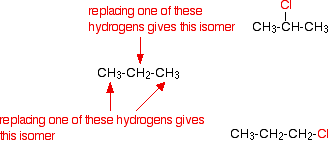 You would again get a mixture of substitution products, but it is worth just looking briefly at what happens if only one of the hydrogen atoms gets substituted (monosubstitution) - just to show that things aren't always as straightforward as they seem!