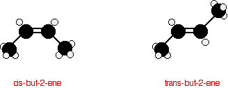 Cis-but-2-ene is also known as (Z)-but-2-ene; trans-but-2-ene is also known as (E)-but-2-ene. For an explanation of the two ways of naming these two compounds, follow the link in the box below. | |||||