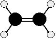 Note: This diagram shows a side view of an ethene molecule. The dotted lines to two of the hydrogens show bonds going back into the screen or paper away from you. The wedge shapes show bonds coming out towards you. | |||||