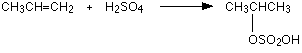 The reaction with propene This is typical of the reaction with unsymmetrical alkenes. An unsymmetrical alkene has different groups at either end of the carbon-carbon double bond. If sulphuric acid adds to an unsymmetrical alkene like propene, there are two possible ways it could add. You could end up with one of two products depending on which carbon atom the hydrogen attaches itself to. However, in practice, there is only one major product.