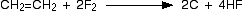 Ethene reacts explosively with fluorine to give carbon and hydrogen fluoride gas. This isn't a useful reaction, and you aren't likely to need it for exam purposes in the UK at this level (A level or equivalent).