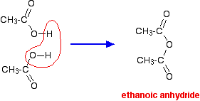 Making amides from acid anhydrides An acid anhydride is what you get if you remove a molecule of water from two carboxylic acid -COOH groups. For example, if you took two ethanoic acid molecules and removed a molecule of water between them you would get the acid anhydride, ethanoic anhydride (old name: acetic anhydride).