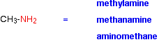 Naming amines can be quite confusing because there are so many variations on the names. For example, the simplest amine, CH3NH2, can be called methylamine, methanamine or aminomethane.