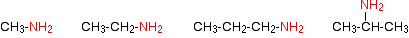 The commonest name at this level is methylamine and, similarly, the second compound drawn above is usually called ethylamine. Where there might be confusion about where the -NH2 group is attached to a chain, the simplest way of naming the compound is to use the "amino" form. For example: