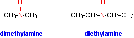 There are other variants on the names, but this is the commonest and simplest way of naming these small secondary amines. Tertiary amines In a tertiary amine, all of the hydrogens in an ammonia molecule have been replaced by hydrocarbon groups. Again, you are only likely to come across simple ones where all three of the hydrocarbon groups are alkyl groups and all three are the same. The naming is similar to secondary amines. For example: