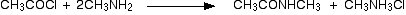 The reactions of amines with acyl chlorides (acid chlorides) We'll take the reaction between methylamine and ethanoyl chloride as typical. If you add concentrated methylamine solution to ethanoyl chloride, there is a violent reaction in the cold. N-methylethanamide and methylammonium chloride are formed - partly as a white solid mixture, and partly in solution. The overall equation is: