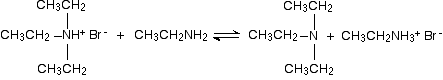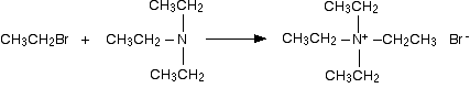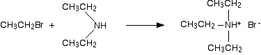 The ethylamine removes a hydrogen ion from the triethylammonium ion to leave a tertiary amine - triethylamine. Making a quaternary ammonium salt The final stage! The triethylamine reacts with bromoethane to give tetraethylammonium bromide - a quaternary ammonium salt (one in which all four hydrogens have been replaced by alkyl groups).