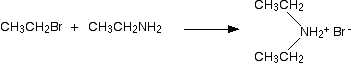 The nucleophilic properties of amines Why do amines act as nucleophiles? A nucleophile is something which is attracted to, and then attacks, a positive or slightly positive part of another molecule or ion. All amines contain an active lone pair of electrons on the very electronegative nitrogen atom. It is these electrons which are attracted to positive parts of other molecules or ions. The reactions of primary amines with halogenoalkanes You get a complicated series of reactions on heating to give a mixture of products - probably one of the most confusing sets of reactions you will meet at this level. The products of the reactions include secondary and tertiary amines and their salts, and quaternary ammonium salts. Making secondary amines and their salts In the first stage of the reaction, you get the salt of a secondary amine formed. For example if you started with ethylamine and bromoethane, you would get diethylammonium bromide