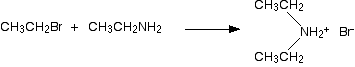 The ammonia removes a hydrogen ion from the diethylammonium ion to leave a secondary amine - diethylamine. A secondary amine is one which has two alkyl groups attached to the nitrogen. Making a tertiary amine And still it doesn't stop! The diethylamine also reacts with bromoethane - in the same two stages as before. In the first stage, you get triethylammonium bromide.