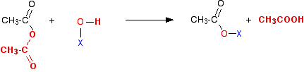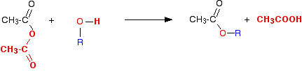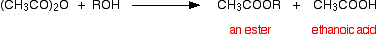 The reaction with alcohols We'll start by taking the general case of any alcohol reacting with ethanoic anhydride. The equation would be: