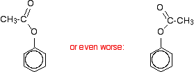 But beware! You may come across the structure of the ester drawn in a variety of other ways which make it look much more as if it was a derivative of phenol (which of course it is!). For example: