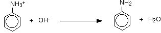 Stage 2: conversion of the phenylammonium ions into phenylamine All you need to do is to remove the hydrogen ion from the -NH3+ group. Sodium hydroxide solution is added to the product of the first stage of the reaction.