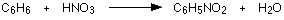 The concentrated sulphuric acid is acting as a catalyst and so isn't written into the equations. The temperature is kept relatively low to prevent more than one nitro group being substituted onto the ring. | ||