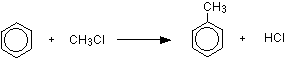 Note: The methylbenzene formed is more reactive than the original benzene, and so the reaction doesn't stop there. You get further methyl groups substituted around the ring. You can improve your chances of just getting monosubstitution by using a large excess of benzene. You won't have to worry about this for UK A level purposes. You will find the mechanism for this reaction in the mechanisms section of this site. Use the BACK button on your browser to return to this page later. | ||