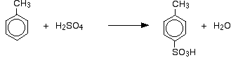 The sulphonation of methylbenzene Methylbenzene is more reactive than benzene because of the tendency of the methyl group to "push" electrons towards the ring. Exactly how this increases the rate of reaction is beyond UK A level - it is rather more complicated than just an increase in the electron density of the ring. The effect of this greater reactivity is that methylbenzene will react with fuming sulphuric acid at 0°C, and with concentrated sulphuric acid if they are heated under reflux for about 5 minutes. As well as the effect on the rate of reaction, with methylbenzene you also have to think about where the sulphonic acid group ends up on the ring relative to the methyl group. Methyl groups have a tendency to "direct" new groups into the 2- and 4- positions on the ring (assuming the methyl group is in the 1- position). Methyl groups are said to be 2,4-directing. The origin of this directing effect is also beyond UK A level. So you get a mixture which mainly consists of two isomers. Only about 5 - 10% of the 3- isomer is formed. The main reactions are:
