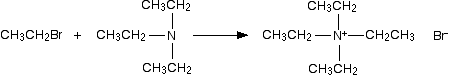 The ammonia removes a hydrogen ion from the triethylammonium ion to leave a tertiary amine - triethylamine. A tertiary amine is one which has three alkyl groups attached to the nitrogen. Making a quaternary ammonium salt The final stage! The triethylamine reacts with bromoethane to give tetraethylammonium bromide - a quaternary ammonium salt (one in which all four hydrogens have been replaced by alkyl groups).