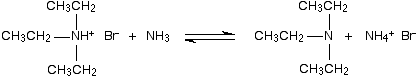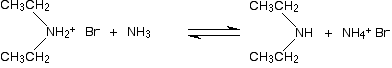 The ammonia removes a hydrogen ion from the ethylammonium ion to leave a primary amine - ethylamine. The more ammonia there is in the mixture, the more the forward reaction is favoured. | ||