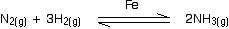 The Haber Process for the manufacture of ammonia The Haber Process combines hydrogen and nitrogen to make ammonia using an iron catalyst. This is another reversible reaction, and another example of heterogeneous catalysis.