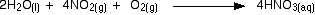 The nitrogen dioxide (still in the presence of excess air) is absorbed in water where it reacts to give a concentrated solution of nitric acid.