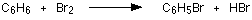 The reaction with bromine The reaction between benzene and bromine in the presence of either aluminium bromide or iron gives bromobenzene. Iron is usually used because it is cheaper and more readily available.
