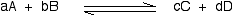 No state symbols have been given, but they will be all (g), or all (l), or all (aq) if the reaction was between substances in solution in water. If you allow this reaction to reach equilibrium and then measure the equilibrium concentrations of everything, you can combine these concentrations into an expression known as an equilibrium constant. The equilibrium constant always has the same value (provided you don't change the temperature), irrespective of the amounts of A, B, C and D you started with. It is also unaffected by a change in pressure or whether or not you are using a catalyst.