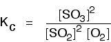 If you compare this with the previous example, you will see that all that has happened is that the expression has turned upside-down. Its value at room temperature will be approximately 1/4 (0.25). It is really important to write down the equilibrium reaction whenever you talk about an equilibrium constant. That is the only way that you can be sure that you have got the expression the right way up - with the right-hand substances on the top and the left-hand ones at the bottom. The Contact Process equilibrium You will remember that the equation for this is: